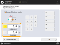 | Drücken Sie <X> oder <Y>, um die Länge der einzelnen Seiten mit den Zahlentasten einzugeben. |