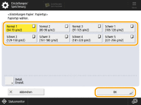 Wenn der Papiertyp des eingelegten Papiers nicht auf der detaillierten Einstellungsanzeige aufgeführt ist, können Sie diesen in der Liste für die Papiertypen registrieren.