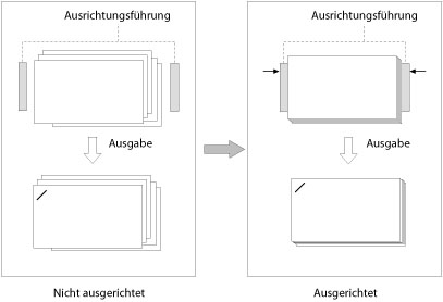 Das kopierte oder bedruckte Papier kann aufgrund von Temperatur, Luftfeuchtigkeit oder einer Eigenschaft des Papiertyps möglicherweise schrumpfen. In diesem Fall können Sie mit diesem Modus kopiertes oder bedrucktes Papier ausrichten, indem Sie die Position der Führung im Finisher so justieren, dass das ausgerichtete Papier geheftet wird.