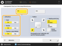 Drücken Sie <Einstellungen Funktion>  <Allgemein>  <Einstellungen Druck>  <Zwangsweiser Druck von Erkennungsinformationen>.