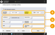 <Startdatum Gültigkeit> / <Enddatum Gültigkeit>Geben Sie Beginn und Ende der Gültigkeitsdauer an.