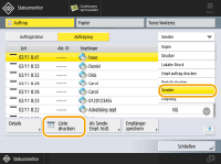 (Statusmonitor/Abbruch) drücken, erscheint der Statusmonitor-Bildschirm, auf dem Sie den Nutzungsverlauf der jeweiligen Funktion wie beispielsweise Kopieren, Drucken, Senden von E-Mail, Senden/Empfangen von I-Faxen usw. überprüfen können. Über diesen Bildschirm können Sie auch den Nutzungsverlauf der jeweiligen Funktion ausdrucken.![]() |