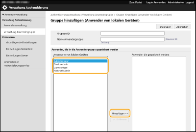 Klicken Sie auf [Gruppe hinzufügen (Anwender von lokalen Geräten)...] oder [Gruppe hinzufügen (andere Anwender)...].