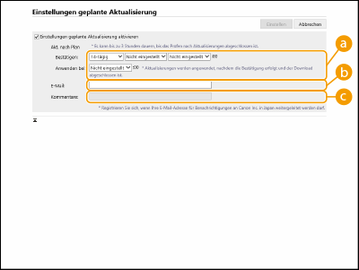 Aktivieren Sie das Kontrollkästchen für [Einstellungen geplante Aktualisierung aktivieren], und konfigurieren Sie die erforderlichen Einstellungen.