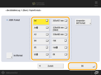 Wählen Sie das gleiche Papierformat aus, das in "Zuschiesseinheit R" eingelegt ist.
