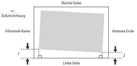 Wenn das Druckbild schräg ist, können Sie das falsch ausgerichtete Bild eventuell durch Anpassen der Ränder von 'i', also dem Abstand von der linken Kante des Papiers zum Druckbereich, und 'j' korrigieren.