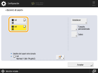 Si aparece <Personalizado> aunque esté cargado papel del tamaño estándar, pulse <Tamaño personalizado>