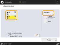 Seleccione la fuente de papel donde se cargará el papel y pulse <Establecer>.
