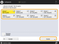 Seleccione el tipo de papel y pulse <Aceptar>.