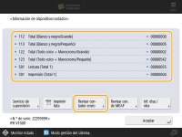 En esta pantalla, también puede consultar la información del contador para cada aplicación MEAP. Pulse <Revisar con. de MEAP> en la pantalla en el paso 2. Si pulsa <Inf. disp./otra> <Revisar conf. dispositivo> en la misma pantalla, puede consultar las opciones instaladas en el equipo y la versión del chip de seguridad relativo al cifrado de datos del dispositivo de almacenamiento.