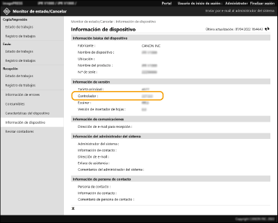 Compruebe la versión que aparece en [Controlador] en [Información de versión].