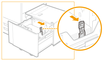 Al cargar papel en el depósito por primera vez, ajuste la placa de cambio de tamaño en función del tamaño del papel cargado. Cambiar el tamaño de papel para el Depósito POD Sencillo C Al cargar papel en el depósito de papel, tenga cuidado de no dar un golpe fuerte al retenedor de la parte trasera, ya que podría provocar una avería o dañar el equipo. ![]() No cargue papel incompatible en la "Depósito POD Sencillo C". De hacerlo, podría causar que se atascara el papel. Papel disponible Si el papel está ondulado, debe enderezarse antes de cargarlo en el depósito de papel. No cargue papel en el "Depósito POD Sencillo C" si ya se ha copiado en él, ya que podría provocar averías o daños en el equipo. Utilice siempre la bandeja multiuso para alimentar papel si desea imprimir al dorso de una hoja de papel (2.ª cara de una copia a doble cara). No coloque nunca papel ni ningún otro artículo en la parte vacía del depósito de papel junto a la pila de papel, ya que el resultado podría ser una avería o daños en el equipo. Hay un ventilador de papel colocado dentro del "Depósito POD Sencillo C". No inserte clips ni ningún otro objeto extraño en el puerto del ventilador. Se pueden producir atascos si carga papel en el "Depósito POD Sencillo C" en condiciones de baja humedad. Si se produce un atasco de papel, siga las instrucciones de la pantalla táctil para retirarlo. Por otra parte, compruebe que el papel cargado no esté ondulado (Atascos de papel en el Depósito POD Sencillo C (Opcional)). Si el papel está doblado, debe enderezarse antes de cargarlo. No podrá realizar copias ni imprimir si carga papel que supere la marca de límite de carga ( ), o si el casete de papel no está completamente introducido en el depósito.Asegúrese de que la altura de la pila de papel no supere la marca de límite de carga ( ).Compruebe siempre que el depósito de papel está bien colocado. Si la primera hoja emitida no puede ser enviada correctamente a la bandeja de salida, se recomienda colocar por adelantado una hoja en blanco del mismo tamaño o de tamaño superior al papel de salida en la bandeja de salida. |
