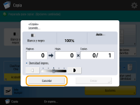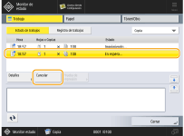 Seleccione los trabajos de copia para cancelar y pulse <Cancelar>.