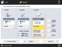 seleccione <Recorte vertical> o <Recorte en 3 bordes> e introduzca el tamaño de acabado deseado