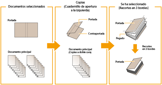 Tamaño de acabado | Tamaño del documento principal | Tamaño de la página de portada |