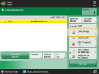 Si <OOXML> se ha seleccionado como el formato del archivo, podrá enviar únicamente en <Auto (Color/Gris)>, <Todo color> o <Escala de gris>.