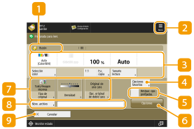 Muestra los botones de uso más frecuente. Se muestra el estado de configuración en los botones. Para cambiar la configuración, pulse el botón deseado.