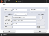 ![]() 有关文件服务器的信息,请咨询网络管理员。 最多可以在操作面板上输入128个半角字符/64个全角字符指定<主机名>。此外,最多可以输入255个半角字符/127个全角字符指定<文件夹路径>。指定服务器设置时不要超过字符限制。 <主机名>输入文件服务器的主机名。 ![]() 选择<Windows (SMB)>时 如果选择<Windows(SMB)>,会显示<检索主机>和<浏览>按钮。通过搜索或查看网络,可以轻松指定文件服务器。 只有<指定SMB客户端版本>中的<1.0>设置为<打开>时,<浏览>才可用。 从<浏览>屏幕的下拉列表中选择<目录>时,可以从本机上注册的Active Directory服务器的域名中进行选择。最多可以注册五个“目录”服务器。 选择<WebDAV>时 输入主机名后,按<下一步>。 <文件夹路径>指定将数据发送到的文件夹目录。 ![]() 当协议选为<Windows(SMB)>时,<检查连接>只能检查指定文件夹路径的第一层。 <用户名>输入文件服务器的登录用户名。 <密码>输入文件服务器的登录密码。 ![]() 如果将启用了<发送前确认>的接收方指定为转发接收方,则不会出现输入密码的屏幕。注册的密码用于执行转发。 <分类文件夹>如果启用<分类文件夹>,则在扫描并发送文档时,可以在<文件夹路径>中指定的接收方文件夹中创建一个新文件夹,并将扫描的文档存储在新文件夹中。扫描前在接收方文件夹中创建另一个文件夹 | ||||||||||||