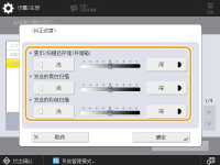 如果设置到<深>侧,将增加使用最大浓度打印的区域。如果设到<少量>侧,可能会像半色调那样打印填充的区域、文本和线条,造成点的缺失。此设置应主要用于调整中间浓度。