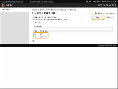 同样可以管理用户组地址列表,方法是只允许具有管理员权限的用户从远程用户界面注册/编辑接收方。<使用用户组地址列表>