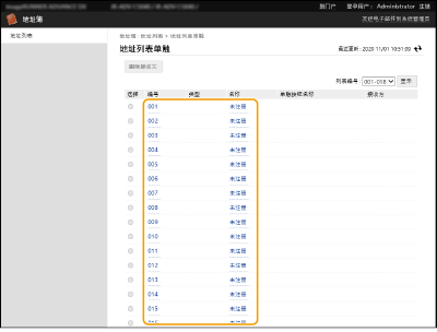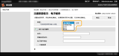 [管理员的地址列表]仅适用于以“管理员”或“设备管理员”权限登录的管理员。
