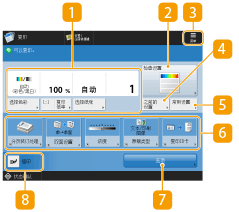 按<复印> (<主页>屏幕)可以显示“基本复印功能”屏幕。
