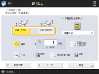 ![]() | 从输稿器复印两份或多份复印件时,可以为打印输出顺序选择分套或分组。选择“分套”可以按顺序页序进行打印。选择“分组”可以打印每一页的所有副本为一组,例如,第一页打印10张,第二页打印10张,依此类推。 |