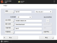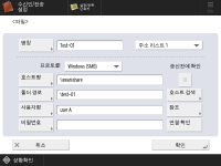 ![]() 파일 서버에 대한 정보는 네트워크 관리자에게 문의하십시오. 조작 패널에서 <호스트명>에 대해 최대 영숫자 128자를 입력할 수 있습니다. 또한, <폴더 경로>에 대해서는 최대 영숫자 255자를 입력할 수 있습니다. 문자수 제한 내에서 서버 설정을 지정합니다. <호스트명>파일 서버의 호스트 이름을 입력합니다. ![]() <Windows (SMB)>가 선택된 경우 <Windows (SMB)>를 선택하면, <호스트 검색> 및 <참조> 버튼이 표시됩니다. 네트워크를 검색하거나 확인하여 파일 서버를 쉽게 지정할 수 있습니다. <참조>는 <SMB 클라이언트 버전 지정>의 <1.0>이 <설정>으로 설정된 경우에만 사용할 수 있습니다. <참조> 화면의 드롭다운 목록에서 <Directory>를 선택하면 기기에 등록된 Active Directory 서버의 도메인 이름에서 선택할 수 있습니다. 최대 5개의 디렉토리 서버를 등록할 수 있습니다. <WebDAV>가 선택된 경우 호스트 이름을 입력한 후 <다음화면>을 누릅니다. <폴더 경로>데이터가 전송된 폴더 디렉토리를 지정합니다. ![]() 프로토콜에 <Windows (SMB)>를 선택하면 <연결 확인>은 지정된 폴더 경로의 첫 번째 수준까지 확인할 수 있습니다. <사용자명>파일 서버의 로그인 사용자 이름을 입력합니다. <비밀번호>파일 서버의 로그인 비밀번호를 입력합니다. ![]() <송신전에 확인>을 활성화할 수신인을 전송 수신인으로 지정하면 비밀번호 입력 화면이 나타나지 않습니다.등록된 비밀번호가 사용되고 전송이 수행됩니다. <폴더 분류><폴더 분류>가 활성화된 경우 문서를 스캔하여 전송할 때 <폴더 경로>에 지정된 대상 폴더에 새 폴더를 만들고 스캔한 문서를 새 폴더에 저장할 수 있습니다. 스캔하기 전에 대상 폴더에 다른 폴더 만들기 | ||||||||||||