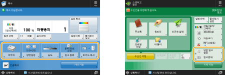 기능 단축 키 버튼을 각 기능 화면에 표시할 수 있습니다. 자주 사용되는 기능을 등록하면 <홈> 화면으로 돌아가지 않고 기능을 계속 사용할 수 있습니다.