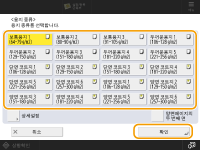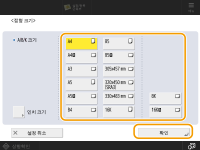 2 | 용지 크기를 선택하고 <확인>을 누릅니다. |