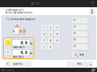 <X> 또는 <Y>를 눌러서 숫자 키를 사용하여 양쪽의 길이를 입력합니다. ![]() 자주 사용하는 용지 크기를 <S1>부터 <S5>까지 버튼에 등록하면 버튼만 눌러서 불러낼 수 있습니다. 프리 사이즈 용지 등록(사용자 정의 크기 용지) | |