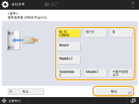2 | 봉투 유형을 선택합니다. ![]() 사용자 정의 크기 봉투를 등록하려면 <사용자설정 크기> <다음화면>을 누르고 <X> 또는 <Y>를 눌러 면을 지정한 후 숫자키를 이용해 지정된 면의 길이를 입력합니다. |