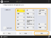 <수동급지대 용지의 기본 설정>을 누릅니다.