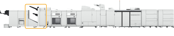 다음 그림에는 "Staple Finisher-AF" 또는 "Booklet Finisher-AF"의 위치가 나와 있습니다.