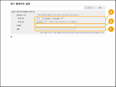 [정기 업데이트 설정을 유효로 함] 확인란을 선택하고 필요한 설정을 구성합니다.