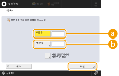 3 | 부서 ID와 PIN을 입력하고 <확인>을 누릅니다. ![]() <부문 ID>부서 ID로 최대 7자리의 숫자를 입력합니다. <PIN 번호>PIN으로 최대 7자리 숫자를 입력하고 <확인입력>을 누릅니다. 확인을 위해 PIN을 다시 입력하고 <확인>을 누릅니다. PIN을 설정하지 않으려면, 이 항목을 빈 칸으로 둡니다. ![]() 예를 들어 "00" 또는 "0000000"과 같이 0으로만 구성된 부서 ID 또는 PIN을 등록할 수 없습니다. 7자리 미만을 입력하더라도 숫자 앞에 0이 추가되어 7자리 숫자가 설정됩니다. <제한 설정/해제와 제한면수 설정>을 눌러 부서가 복사, 스캔, 인쇄할 수 있는 최대 페이지 수를 설정할 수 있습니다. 또한 7자리 입력을 부서 ID 및 PIN에 대한 요구 사항으로 만들 수 있습니다. 자세한 내용은 대리점이나 서비스 담당자에게 문의하십시오. 컬러와 흑백 영역이 모두 포함된 문서 인쇄 중 컬러 또는 흑백 페이지 제한 중 하나에 도달하면 기기가 인쇄를 정지합니다. 컬러와 흑백 영역이 모두 포함된 문서를 복사하는 동안 컬러 또는 흑백 인쇄 또는 복사 제한 중 하나에 도달하면 기기가 복사를 중지합니다. |