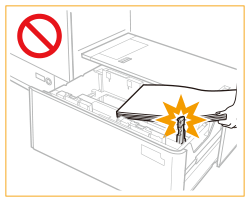 용지 데크 내부의 리프터는 자동으로 올라가고 내려갑니다. 용지를 적재할 때 손가락이 끼지 않도록 주의하십시오. 부상을 입을 수 있습니다. |