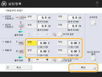 <배율 (d)>: | 입력된 비율에 따라 이송 방향과 수직 방향으로 이미지를 확대하거나 축소합니다. |
