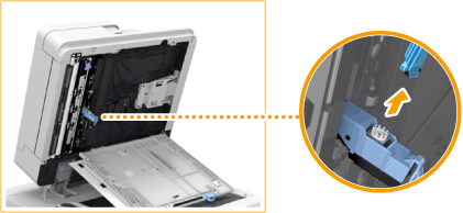 フィーダー上部のレバーを引いて、原稿読み取りエリアカバーを開きます。