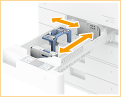 給紙カセット1の左側ガイドを調節したあと、左側ガイドに封筒アタッチメントBを装着します。
