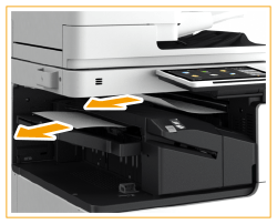 ホチキスを設定してプリントしていた場合、ホチキスされる前の出力紙の束は取り除かないでください。紙づまりを処理したあと、続きから出力されます。