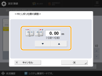 オプションの中綴じフィニッシャーを使って中とじ印刷したときに、折り位置が用紙の中心からわずかにずれる場合は、折り位置が中心になるように微調整します。