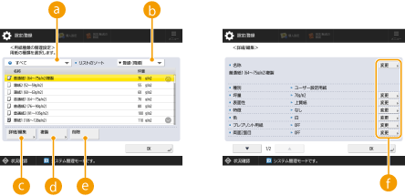 ユーザー設定用紙を登録したり、登録したユーザー設定用紙の設定値を変更するには、管理者としてログインする必要があります。ログインする 用紙種類を登録するときは、給紙位置を指定することはできません。給紙位置を登録するには、 給紙カセットの用紙サイズと種類を設定する を参照してください。 登録したユーザー設定用紙の情報をインポート/エクスポートして他のキヤノン製複合機と共有することができます。設定内容を個別にインポート/エクスポートする |