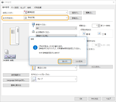 ![]() | 「大量印刷を夜間に行う」などの目的で、印刷時刻を設定することができます。 |