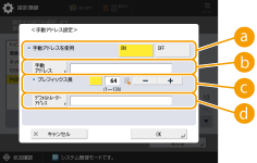 <手動アドレス>ボタンを押して、アドレスを入力します。次のアドレスは入力できません。