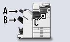Staple Finisher-AE or Booklet Finisher-AE | <Tray A> 2 Copy, 2 Access Stored Files, 2 Printer, 1 Receive, Other, 1 IP Fax, 1 Fax <Tray B> 1 Copy, 1 Access Stored Files, 1 Printer, Receive, Other, IP Fax, Fax <Tray C> Copy, Access Stored Files, Printer, Receive, 1 Other, IP Fax, Fax | ![]() |
