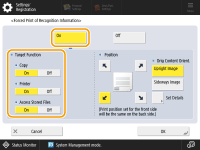 In <Target Function>, press <On> for each function that you want to apply this setting to.