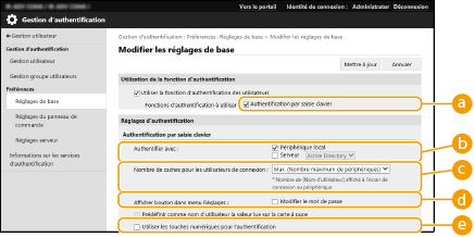 Configurez les réglages ci-dessous pour utiliser l'authentification au clavier.