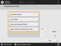 (Settings/Registration). Se você usa frequentemente um item de configuração fornecido em um nível muito profundo, pode convenientemente usar o atalho para este item para alterar rapidamente a exibição.