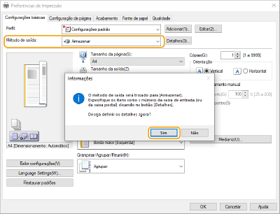 O nome da caixa registrado na máquina pode ser aplicado ao driver da impressora. Para detalhes, consulte a Ajuda do driver da impressora.